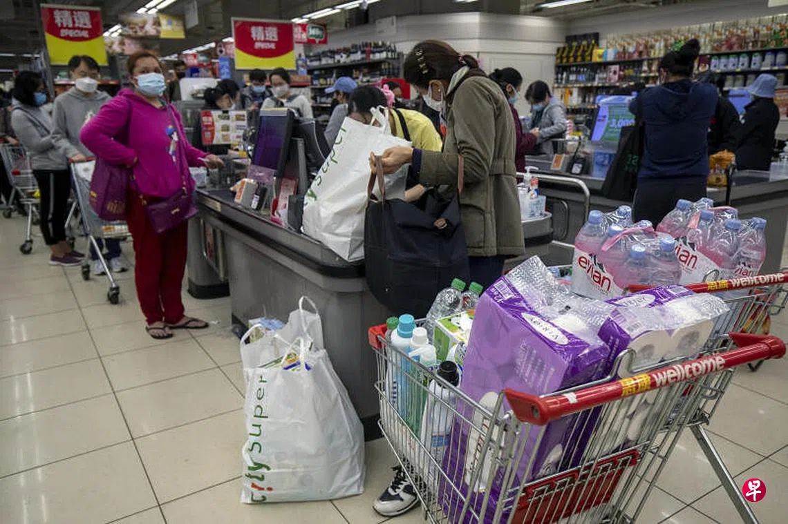 “禁足”相关传闻报道后,香港社会连日来涌现恐慌情绪。许多市民担心一旦禁足,期间一日三餐无以为继,引发各区超市、街市出现抢购潮。《联合早报》记者昨天在将军澳区一些药房发现,一些普通药物如头痛药和维他命C,也被抢购一空。