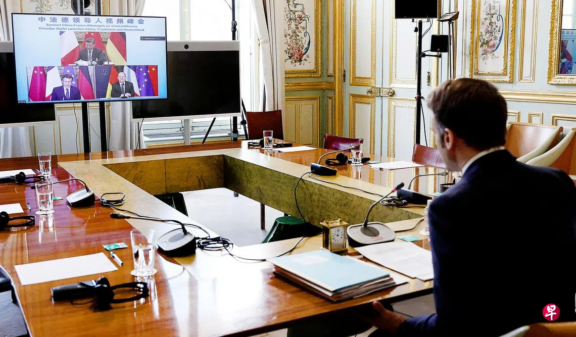 中国国家主席习近平同法德两国领导人举行视频峰会,强调三国要共同支持俄乌和谈,呼吁“保持最大限度克制”;法国强调,三国同意就乌克兰冲突保持密切联系。