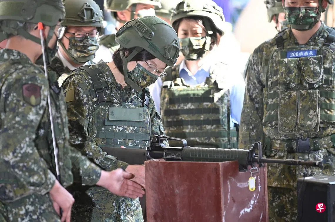 (台北综合讯)台湾总统蔡英文昨天视察了根据一项新计划进行的后备军人训练活动,并说乌克兰情势再次证明,守护国家除国际声援和协助,还是要靠全民团结一致,她要求台湾国防部检讨精进,强化后备战力。