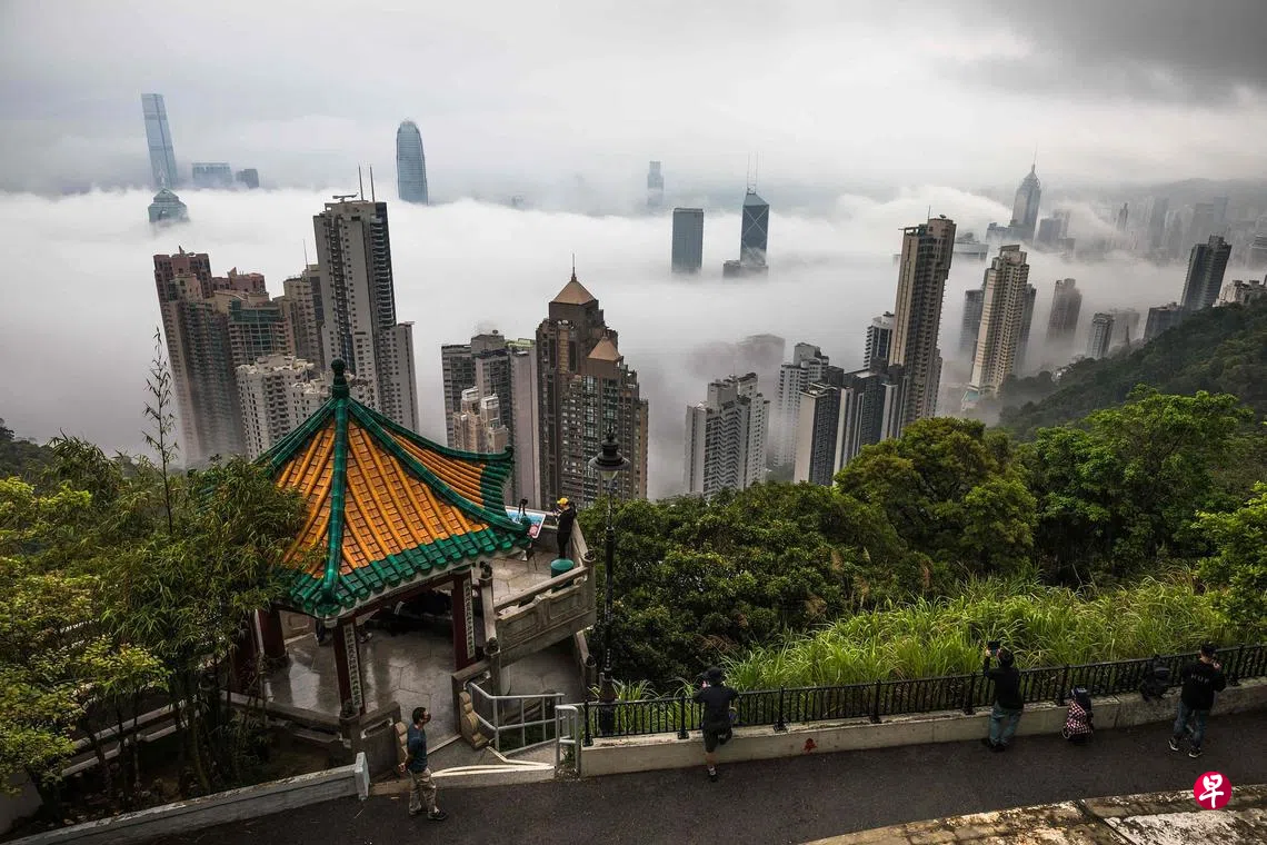 云雾罩香江订户赠阅文章香港连日来被大雾笼罩,昨天早晨从港岛太平山顶望向维多利亚港都是白茫茫一片,高楼大厦几乎被云雾湮没,虽然看不到海港景色,游人依然拿出手机相机拍照。香港天文台说,一股潮湿的海洋气流为广东沿岸带来有雾天气。(法新社)香港上一篇杨丹旭:空难后的网络乱象下一篇港大医学院推算第五波疫情病例 下月21日料降至三位数
