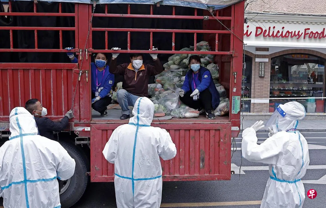大场镇居民刘姗(化名)告诉《联合早报》,她至今还没收到镇政府发放的物资,但在网上看到别人晒出的照片,“东西也不多,还得靠自己买”。