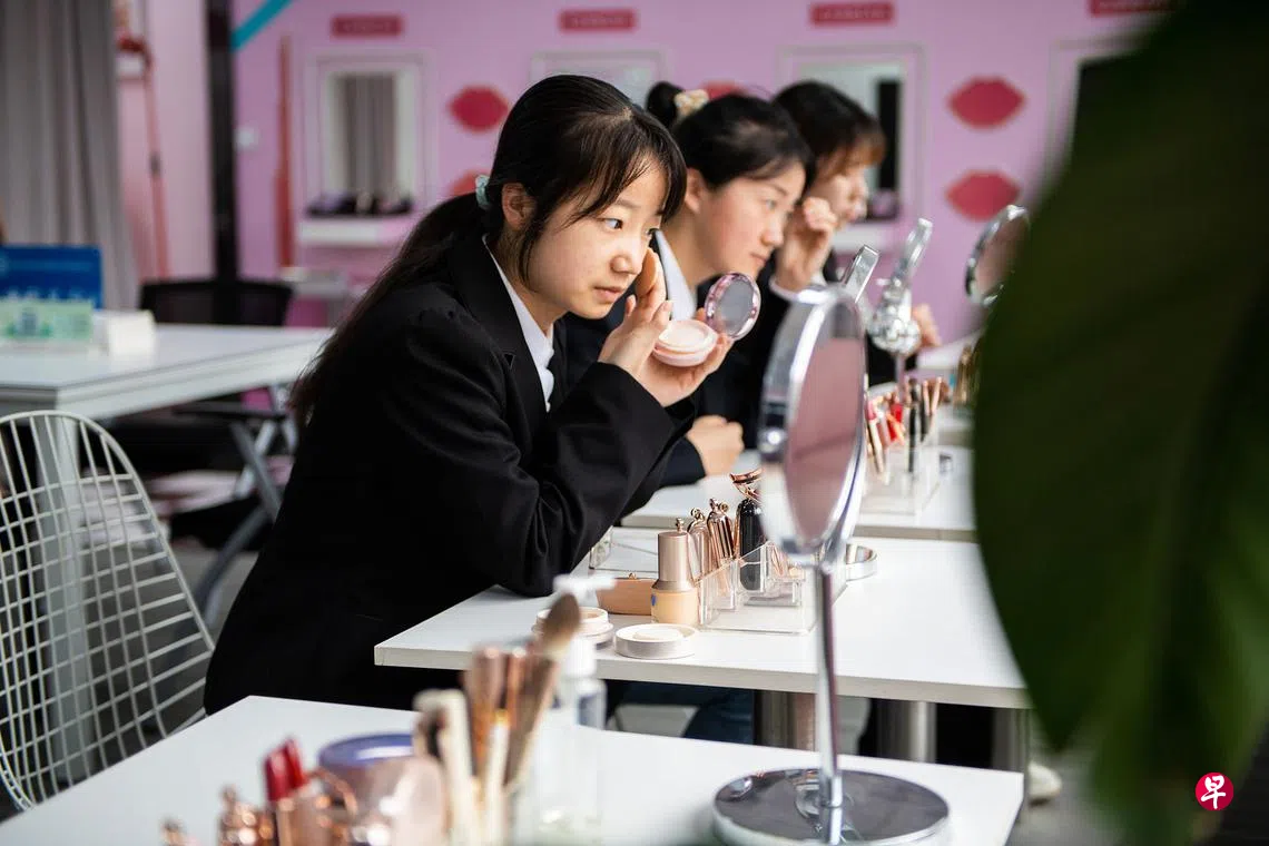 在湖南长沙中南大学就业指导中心,学生昨天在网络面试前化妆。为助力学生求学求职,中南大学为考研和求职的学生准备网络面试间,房间内有专用网络,同时还配有手机支架、补光灯等专业设备。此外,学校还为前来面试的学生提供服装、化妆、简历优化、心理调适、面试指导等服务。(新华社)