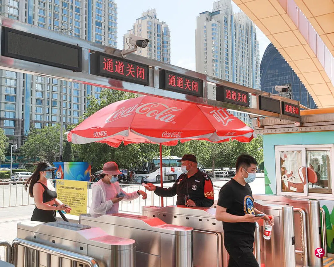 游客昨天(29日)经过测温后,进入北京朝阳公园。公园依据“限量、预约、错峰”原则,按照50%限流恢复开放,游客需持48小时内核酸阴性证明,经测温、扫码后入园。从昨天起,除封(管)控区外,北京朝阳、顺义、房山三个区也恢复公交、地铁、德士等公共交通运营服务。除封(管)控区内的购物商场外,因疫情暂停营业的购物商场也恢复营业,适度控制客流量,暂不举办展销促销等聚集性活动。(中新社)