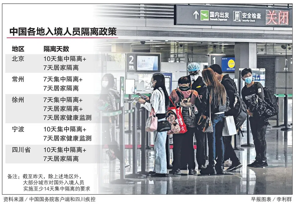 中国在冠病大流行后的两年多来维持严格的边境政策,口岸城市要求入境人员执行至少14天集中隔离,以防止输入病毒传播。但随着全球加速恢复国际旅游,以及本土疫情趋稳,首都北京上月已带头把入境人员的集中隔离时长缩减至10天;本月以来,四川省、徐州和宁波等地也跟进把入境人员的集中隔离天数下调至七天或10天。中国媒体本周也报道,中国民航局调整了熔断规则,对通往中国的国际航班是否被熔断,统计日期从落地后七天减至五天。这意味着,航班被熔断的概率将降低。