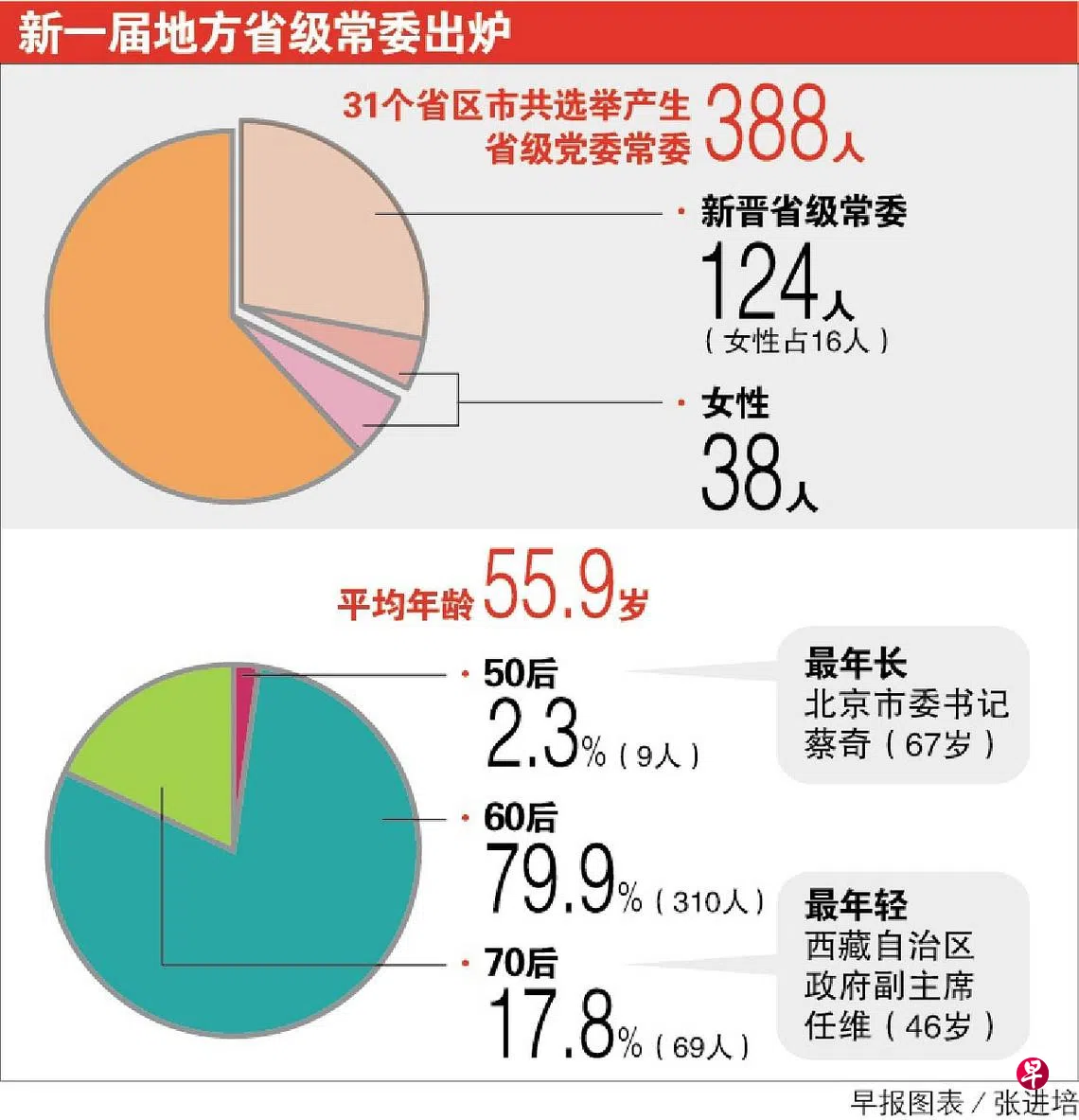 6月的最后一天,中共北京市第十三次代表大会闭幕,新一届市委常委出炉。至此,始于去年10月的各省级党委换届全部完成,新一批省级领导班子成员共有388人。