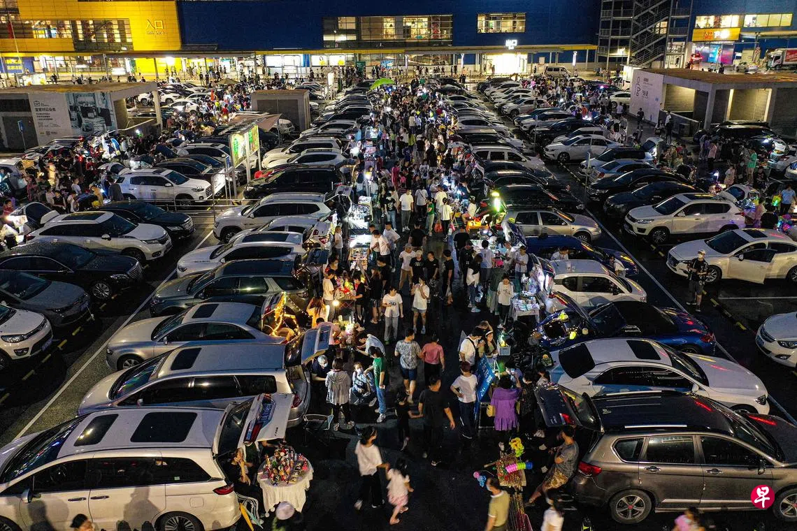 沈阳宜家停车场每周六下午5时到晚上9时,摇身一变成为市集,摊主带着各种货品:衣饰、绘本、自制手工艺品、闲置二手物品……利用汽车后备箱贩卖商品、情怀和氛围。