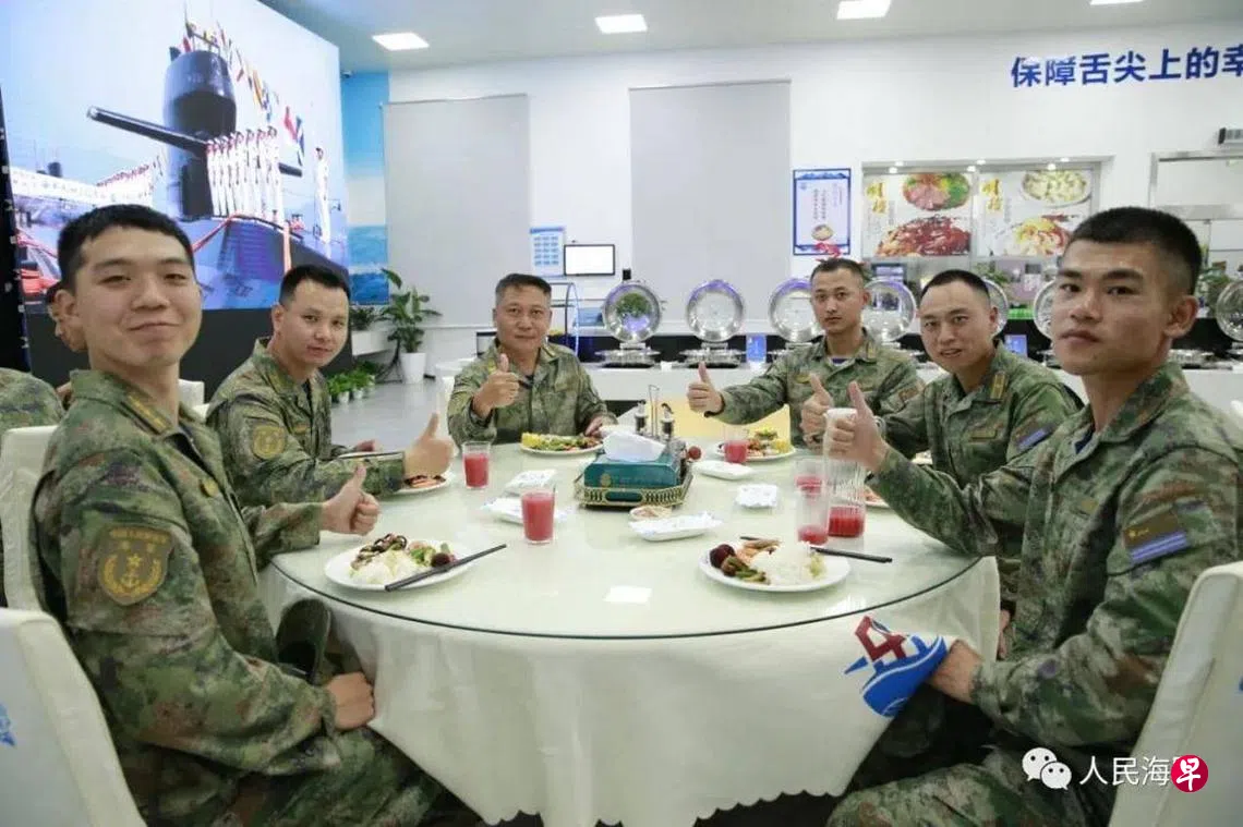 解放军“人民海军”官方微信号星期一(7月18日)在一篇介绍海军食堂的文章中,公布了一张悬挂满旗的潜艇照片。这艘潜艇采用了类似“蘑菇头”的纺锤形指挥台围壳,正是两年前在武汉造船厂出现、被军迷称为039C型的新型潜艇。照片中的潜艇悬挂满旗,士兵整齐列队,显示这型潜艇已经正式入役。