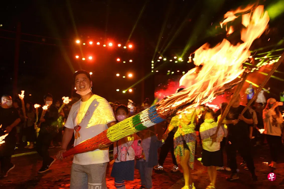 位于云南省昆明市的云南民族村星期四(7月21日)晚举行2022年昆明火把节狂欢活动,来自各地的游客在欢快的音乐、火的海洋中与少数民族民众一起共度“东方狂欢节”。火把节是彝族、白族、纳西族、拉祜族、哈尼族、普米族等中国少数民族的传统节日,在农历六月举行,节期二至三天,主要活动有斗牛、斗羊、斗鸡、赛马、摔跤、歌舞表演、选美等。(中新社)
