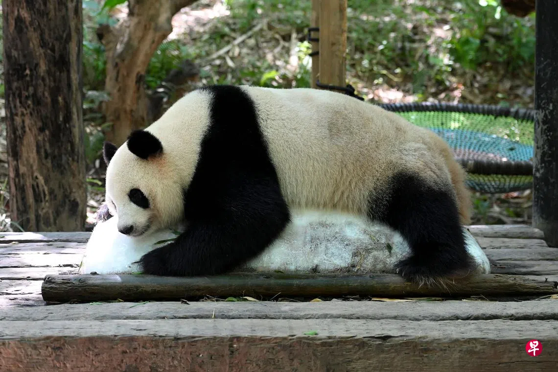 根据传统农历,每逢7月23日(周六)起便是24节气中的“大暑”之日。今年夏天中国各地都出现高温,不少测站测得的气温刷新了历史纪录,摄氏40度的高温已是“家常便饭”。据官方的观测数据,高温将至少持续至7月底。其中,广东省广州市持续高温天气,图为7月22日在广州长隆野生动物世界内的大熊猫“隆隆”,趴在冰块上消暑。(中新社)