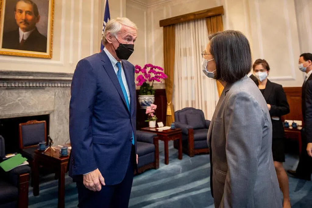 美国参议院外交委员会亚太小组主席马基(Ed Markey)星期一(8月15日)上午带领众议院四名跨党派议员到台湾总统府会见蔡英文。与佩洛西访台时全程直播不同,台湾官方直到星期一傍晚才向媒体公开会见的视频和照片。