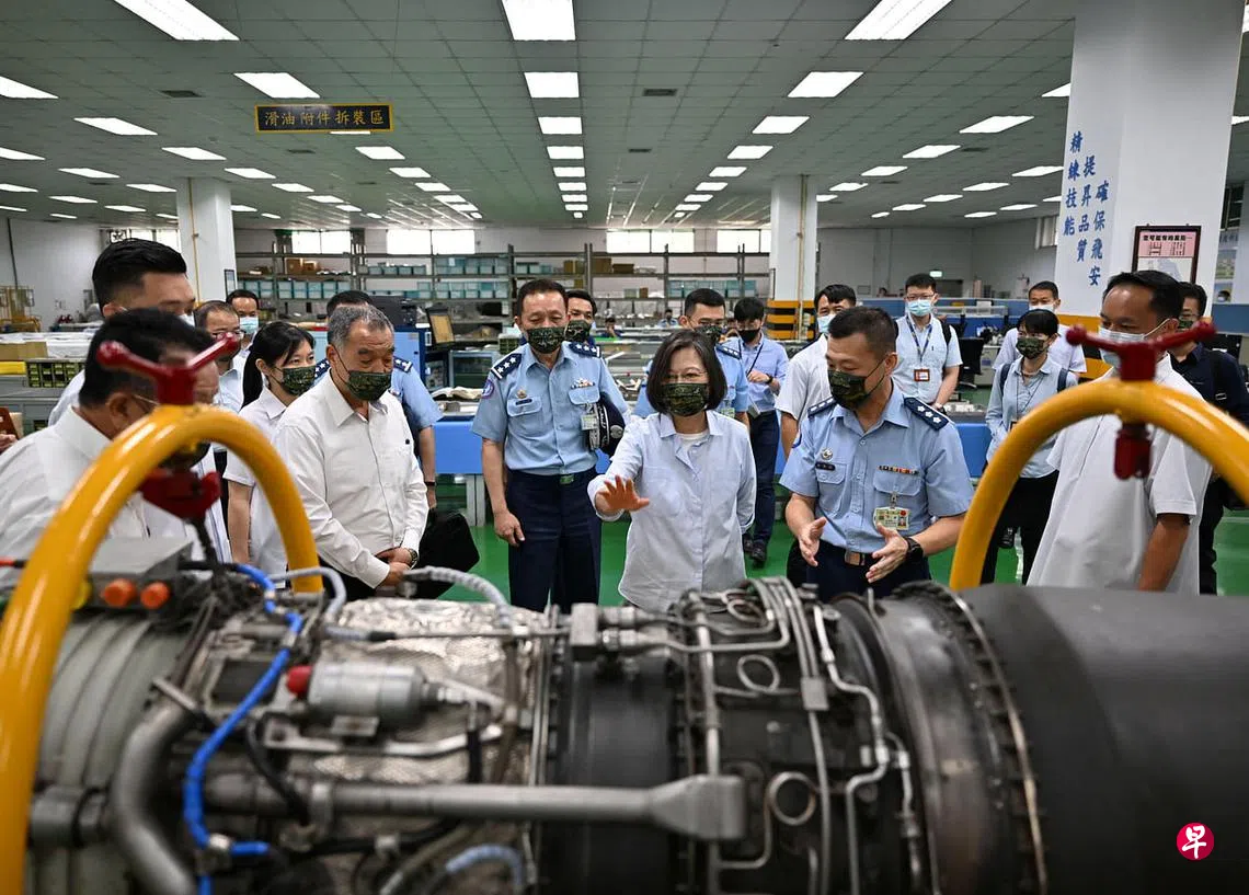 美国众议院议长佩洛西今年8月初访台后,大陆对台进行“类锁台”军事演训行动。蔡英文星期二(9月6日)说,这段期间,台湾空军第五联队不分日夜,随时待命,总体警戒兵力在8月增加63组126人次,防空应处共执行18批36架次,当接获命令后,战机能在六分钟内升空执行巡弋任务。