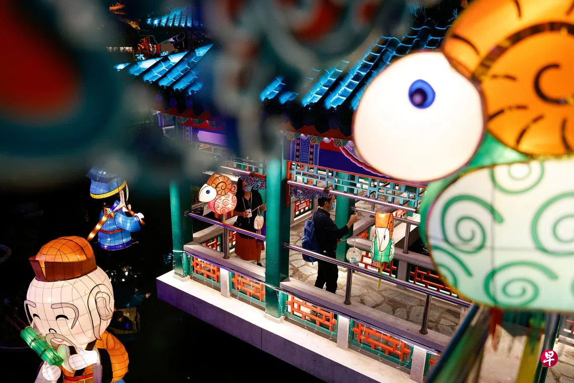 中秋将至,香港市民逛黄大仙祠提灯笼、赏灯笼。(路透社)
