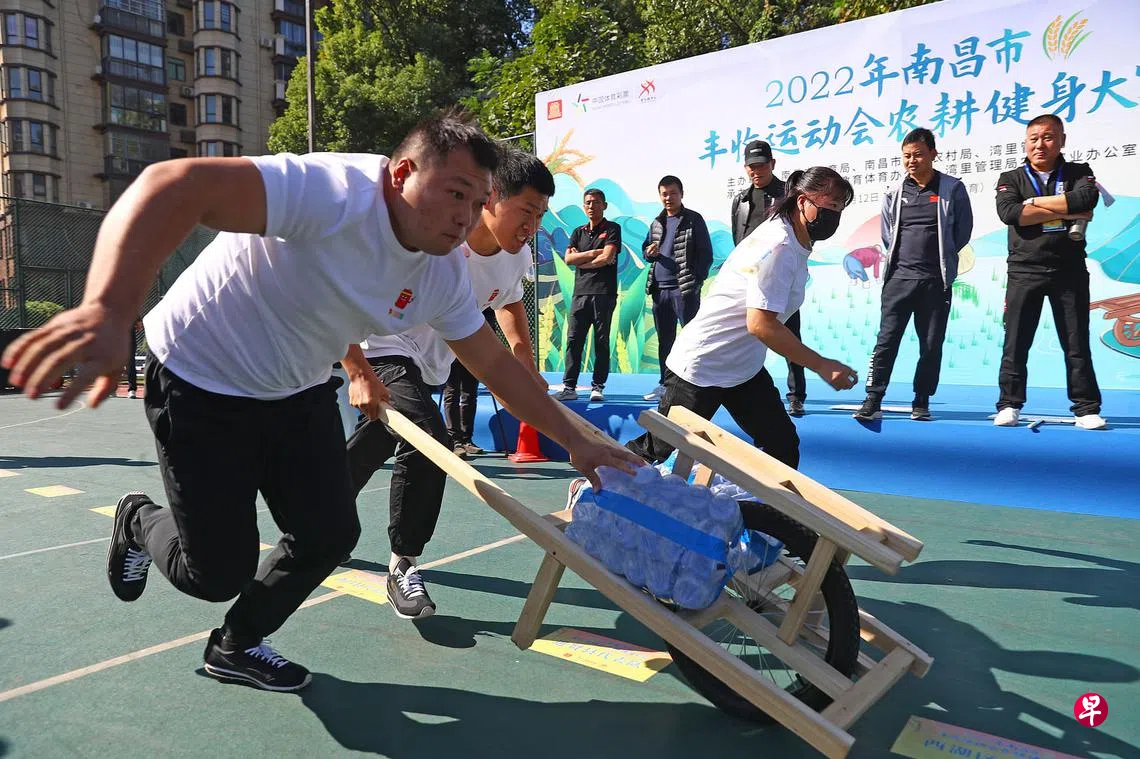 南昌农耕健身大赛10月12日,江西省会南昌市举行2022年丰收运动会农耕健身大赛,参赛选手围绕农耕、农趣、农味,开展急速独轮车、插秧接力、手搓玉米等竞赛。 图为参赛选手推着独轮车奔跑。(中新社) 江西上一篇封关938天台湾今起解封 入境旅客免隔离自主防疫七天下一篇所罗门群岛警察 首次前往中国接受培训