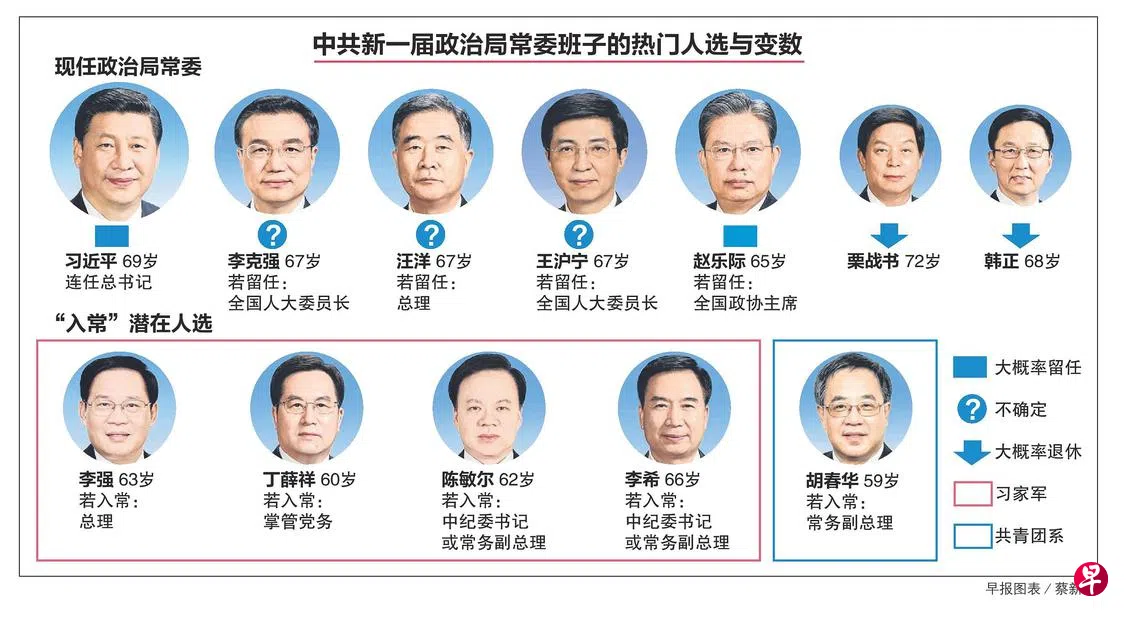 中共二十大今天闭幕,新产生的二十届中央委员会明天将召开第一次全体会议(二十届一中全会),选出新一届中央政治局及其常委会。十八大以来政治局常委会的七人格局预计将保留,但新一届常委的人员构成是近几次党代会来最不确定和变数最大的。
