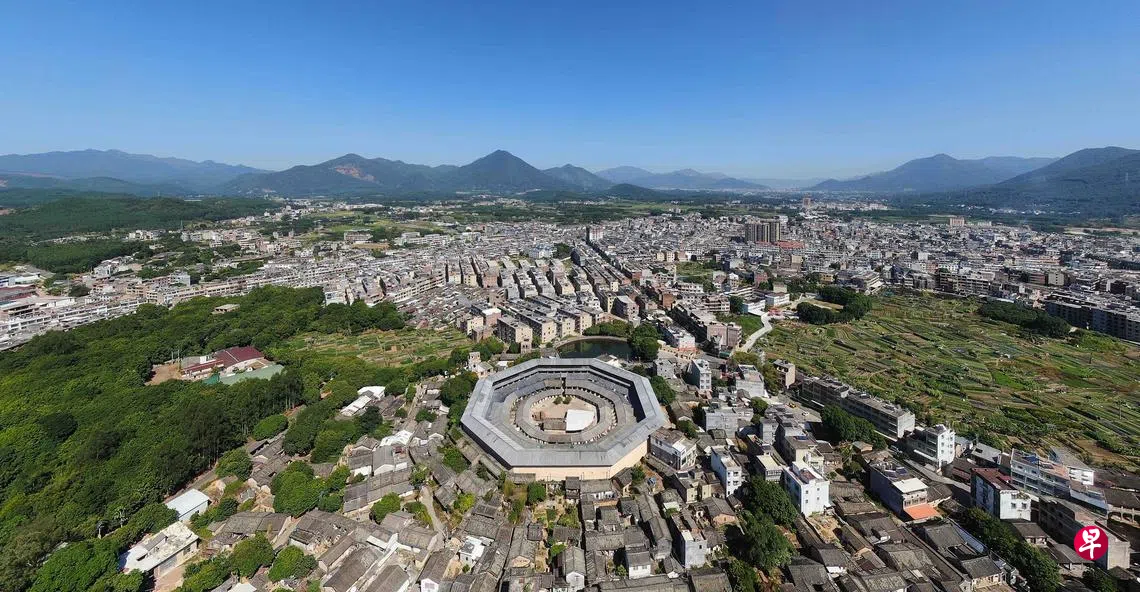 位于广东省潮州市饶平县的道韵楼,建成于明万历15年(公元1587年),占地面积约1万平方米,外围周长328米,有三进围屋,前二进围屋为平房,后为三层楼房,皆以黄泥土夯成,是迄今发现的中国最大的八边形土木结构明代城堡式土楼建筑,为全国重点文物保护单位。道韵楼目前正在进行修缮工作,预计2023年6月全面完工。此图由无人机摄于10月21日。(新华社)