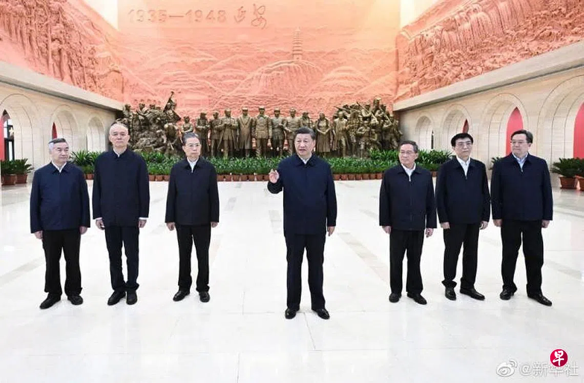 (北京讯)中共二十大闭幕不到一周,中共总书记习近平带领了其他六名政治局常委从北京前往陕西延安,瞻仰延安革命纪念地,宣示新一届中央领导集体赓续红色血脉,并强调要为实现二十大提出的目标任务而团结奋斗。