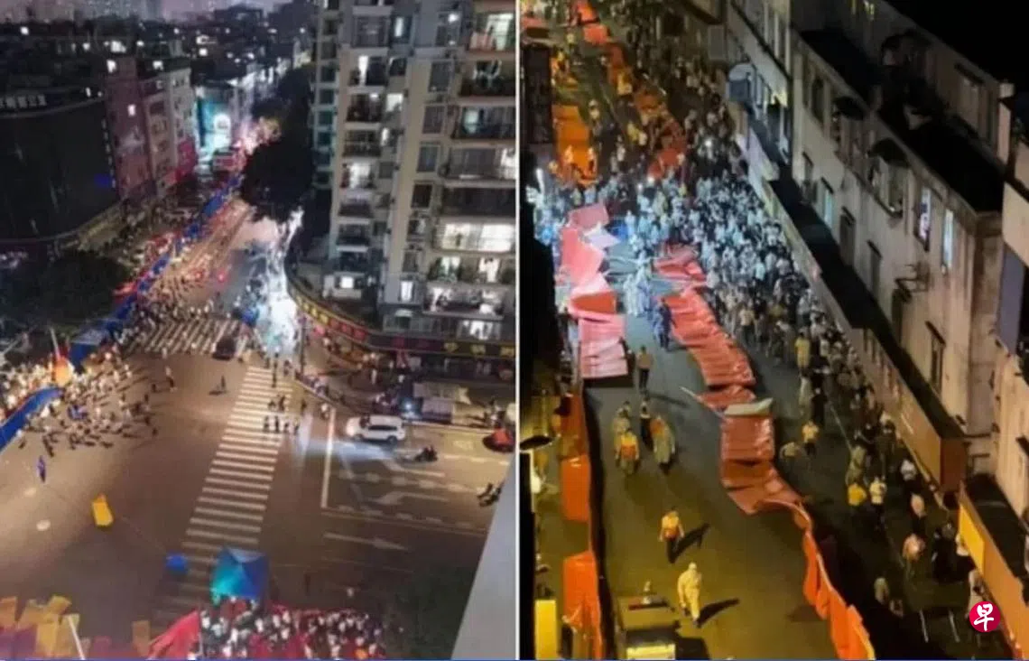 综合法新社与财新网报道,在广州海珠区康乐村、大塘村、鹭江村等疫情管控区域,星期一晚有数百人冲出警戒线,集体上街抗议管控措施。