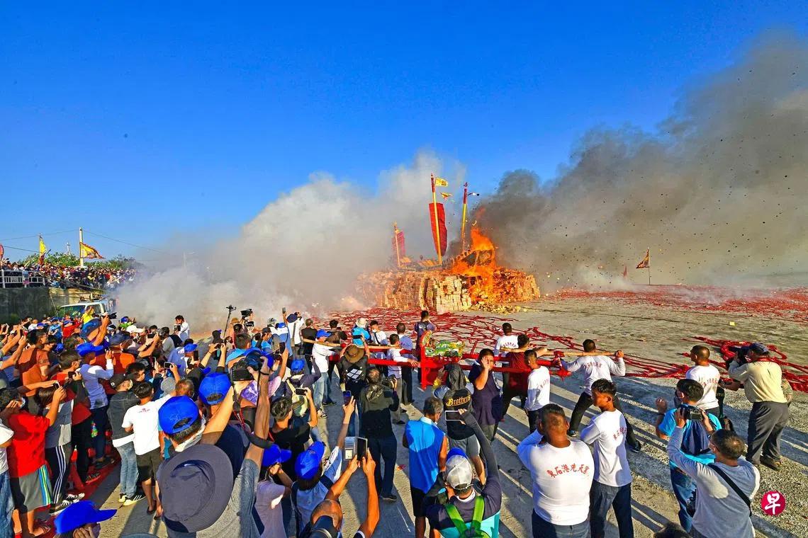 台湾嘉义县“王船祭” “烧王船”送瘟煞订户赠阅文章(中通社)台湾嘉义县东石先天宫日前举办五年一次的“王船祭”,王船“捷丰赢号”绕境后,进行“烧王船”的重头戏,信众引燃王船四周金纸,烈焰火舌卷上船身,象征王船顺风启航,载走瘟煞。上一篇从事经济间谍与盗窃贸易机密罪成 中国一情报员遭美国判处20年监禁下一篇习近平会见岸田 中日重申改善双边关系意愿