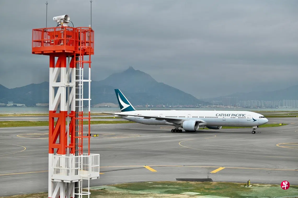 香港国际机场第三跑道经过约四个月的试运行,星期五(11月25日)由特区政府政务司司长陈国基代替感染冠病的特首李家超主持正式启用仪式。香港国际机场第三跑道项目从2016年动工兴建,在现有机场岛以北填海拓地约650公顷,预计全面投入服务后年客运量可达1.2亿人次,年货运量可达1000万吨。除了总长度为3800米的第三跑道,整个项目还包括扩建二号客运大楼、兴建新T2客运廊、旅客捷运系统及行李处理系统等,目标是在2024年完成全部工程,整个项目预计耗资1415亿港元(249亿新元)。图为星期五一架国泰航空CX170航班客机在第三跑道着陆。(中新社)