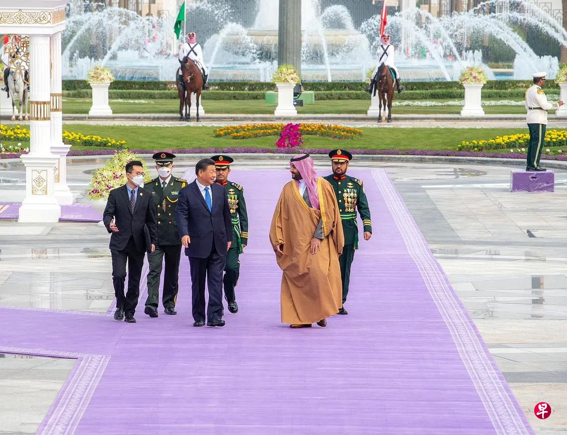 中国国家主席习近平对沙特阿拉伯进行国事访问的第二天,获沙特王储为他举行了盛大的欢迎仪式;两国企业前一天也签署了34项投资协议,将在绿色能源、物流、基础建设和资讯通讯科技等领域展开合作。