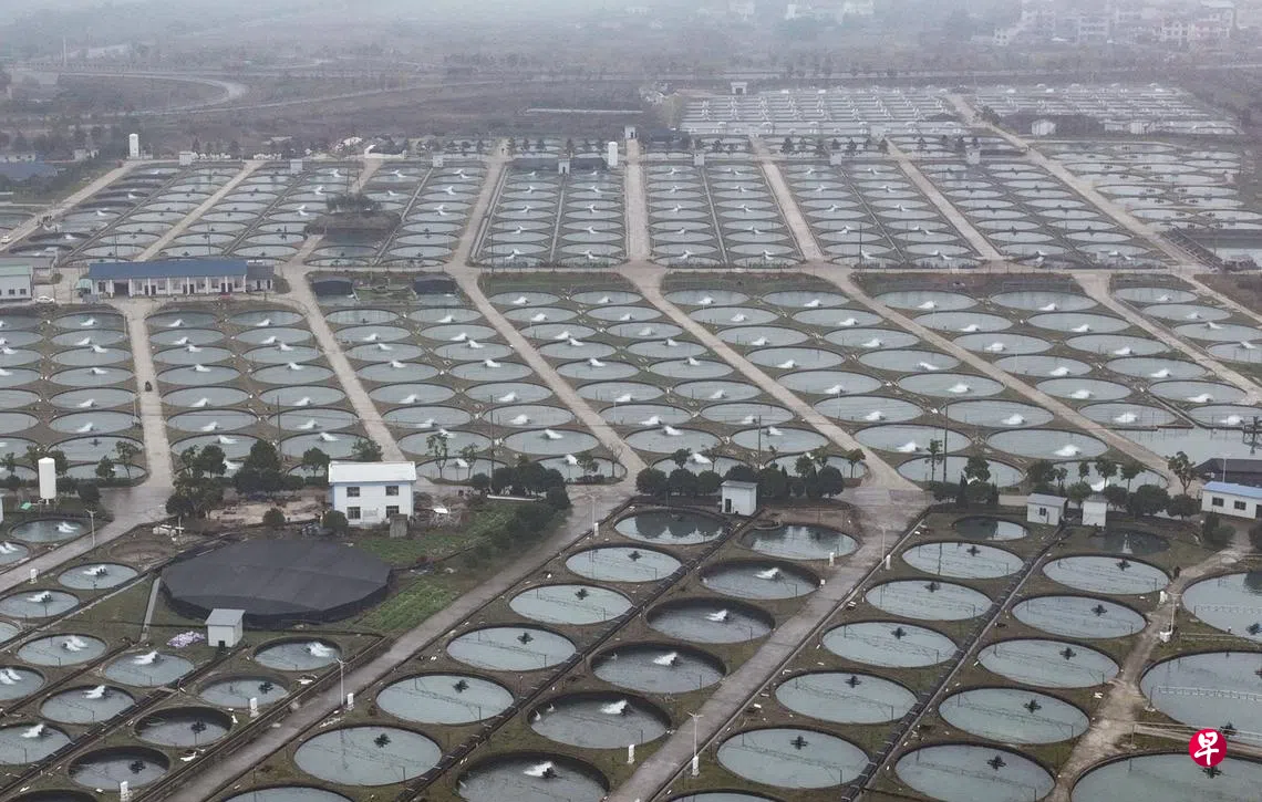 鲟鱼鱼卵制作的鱼子酱被称为“黑黄金”,浙江省衢州市有个700余亩的鲟鱼养殖基地,“黑黄金”年产量达到180余吨,占据中国国内八成的鱼子酱市场份额,还出口至美国、日本、法国等20余个国家和地区。图为12月16日航拍的鲟龙水产食品科技开发有限公司鲟鱼养殖基地。(中新社)