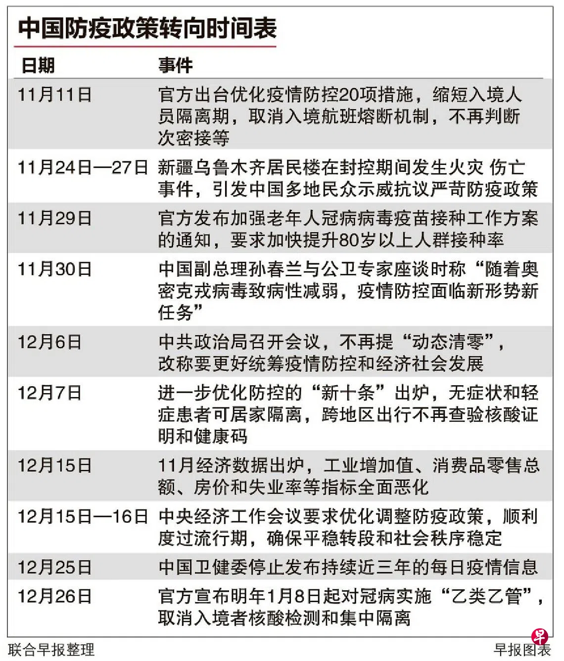 短短一个半月 防疫政策全面转向订户赠阅文章从11月初出台优化防疫20条措施,到12月底宣布对冠病降级管理,短短一个半月里,中国防疫政策全面转向。在此期间,官方表述和防控措施经历多次调整,中国经济形势和社会局势也在持续转变。中国疫情上一篇银保监会将加大金融纾困 帮扶受疫情冲击行业下一篇连降五个月且降幅扩大 中国前11月工业企业利润同比降3.6%