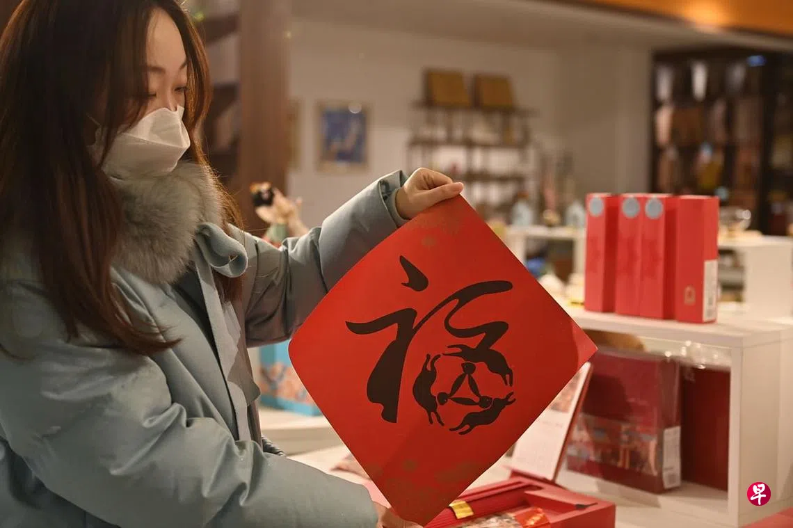 在敦煌当地也有一些文创产品以“三兔共耳”为主题,如“三兔共耳”福字挥春。(中新社)