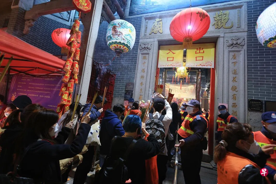 香港大批善信星期三(2月15日)晚上11时(农历正月廿六日子时),前往红磡观音庙参拜,祈求“观音开库”保佑全年顺景、财运亨通。农历正月廿六日,民间称之为“观音开库日”,即观音大开“财库”和“富房”,不少善信当天会到观音庙酬神求财,祈盼新的一年生意兴隆、老少平安。(香港中通社)