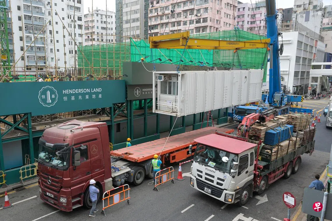 香港首个以组装合成建筑技术兴建的过渡性房屋项目“南昌220”在星期六(2月18日)拆迁重用。拆迁预计一个月内完成,相关单元和组件拆卸后(图)将运往货仓检查维修,再运到新界大埔另一个过渡性房屋项目,重新装嵌使用。港府近年大力推动过渡性房屋发展,为正在轮候公屋、居住条件恶劣的民众改善生活环境和质量。位于九龙半岛深水埗的“南昌220”2019年9月开始组装,2020年7月竣工,次月入伙,共有89个一至三人单位,在两年营运期内累计入住94户共175人。
