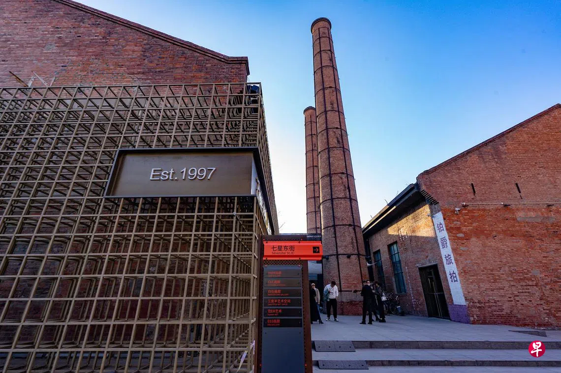 798艺术区是位于北京市朝阳区酒仙桥路2号的文化创意产业集聚区,前身是由前苏联援建、前东德负责设计建造,总面积达110万平方米的重点工业项目718联合厂,即北京第三无线电器材厂。该厂于1952年筹建,1964年4月拆分为多个厂,798厂为其中之一。虽说是苏联所援,798厂建筑多为东德的包豪斯风格,并没有太强的社会主义建筑气息。从2002年开始,由于租金低廉,诸多艺术家工作室和当代艺术机构开始聚集于798,逐渐形成了一个艺术群落,成为北京的文化地标之一。图为3月4日一家摄影公司在798艺术区的老厂房内营业。