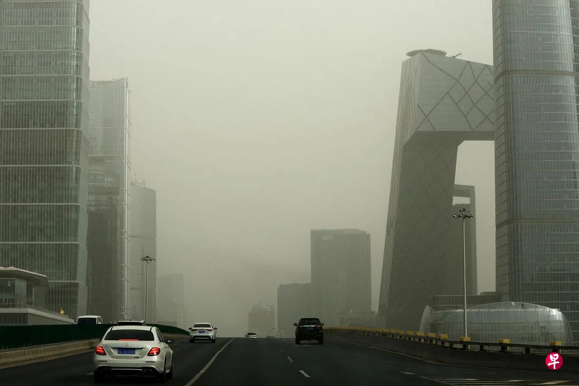北京市气象台星期三(3月22日)早上升级发布沙尘暴黄色预警信号,大部分地区最低能见度小于一公里。受冷空气影响,中国北方大部地区一连两天遭遇较强沙尘暴天气侵袭,是今年以来影响范围最广的一次,预计要到星期四(3月23日)白天才会逐渐减弱结束。图为北京商务中心区的高楼笼罩在沙尘中。(路透社)