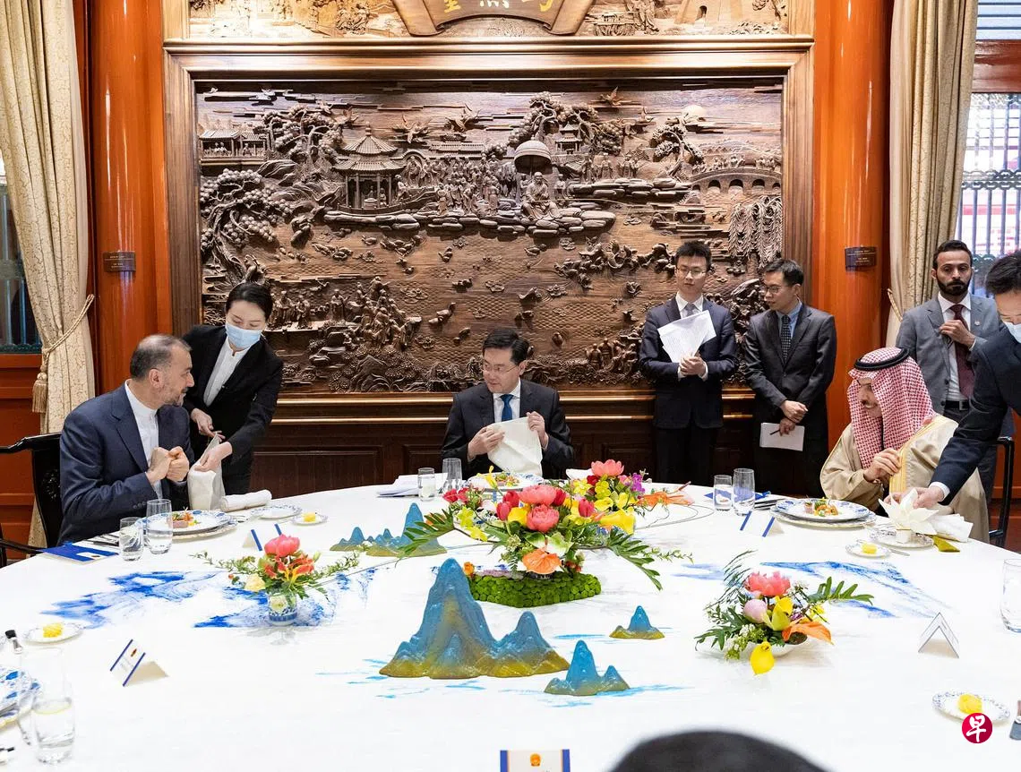 据中国外交部官网发布的消息,中国国务委员兼外长秦刚星期四集体会见赴华举行会晤的沙特外交大臣费萨尔和伊朗外长阿卜杜拉希扬,并在会晤后见证沙伊双方签署联合声明,两国宣布即日起恢复外交关系。