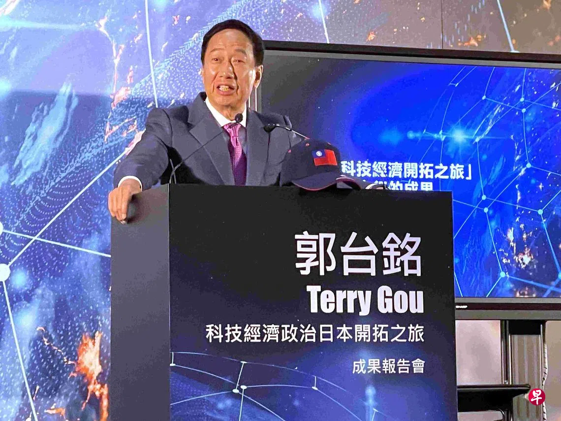 郭台铭上周访问日本后返台,星期二(4月18日)在台北寒舍艾美酒店举办“科技经济政治日本开拓之旅”成果报告会,对台湾前途作上述表述。