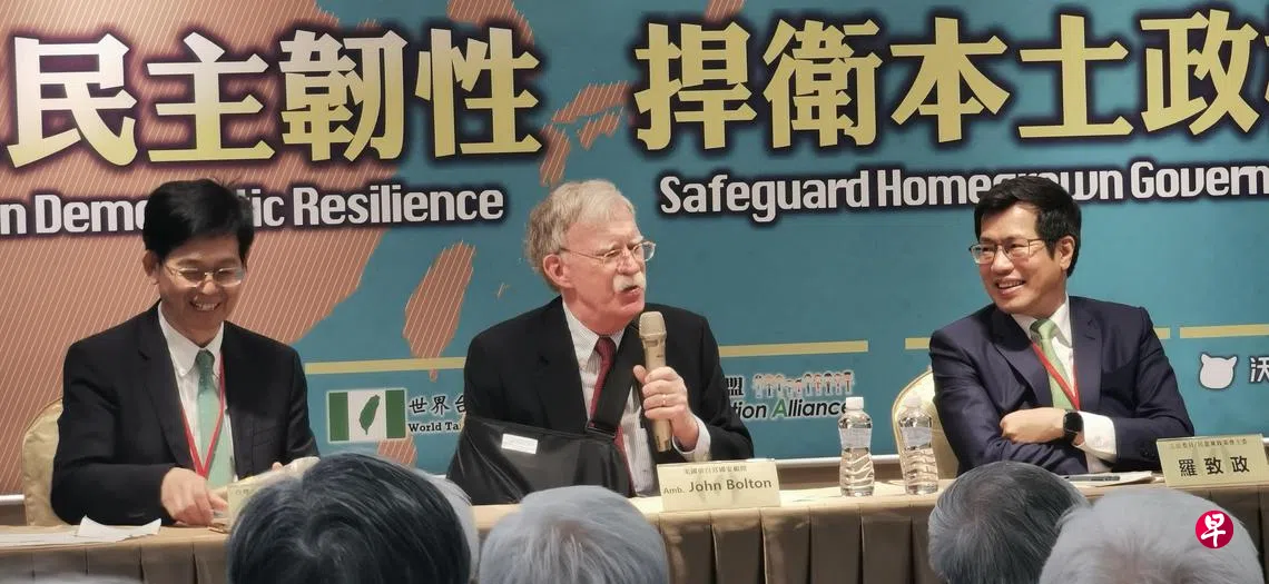 74岁的博尔顿(John Bolton)从4月26日起访台七天,先后拜会执政的民进党和最大在野党国民党,星期六(4月29日)应邀到独派团体世界台湾人大会与台湾国家联盟合办的海内外台湾国是会议,以“台湾长治久安之计”为题演讲。
