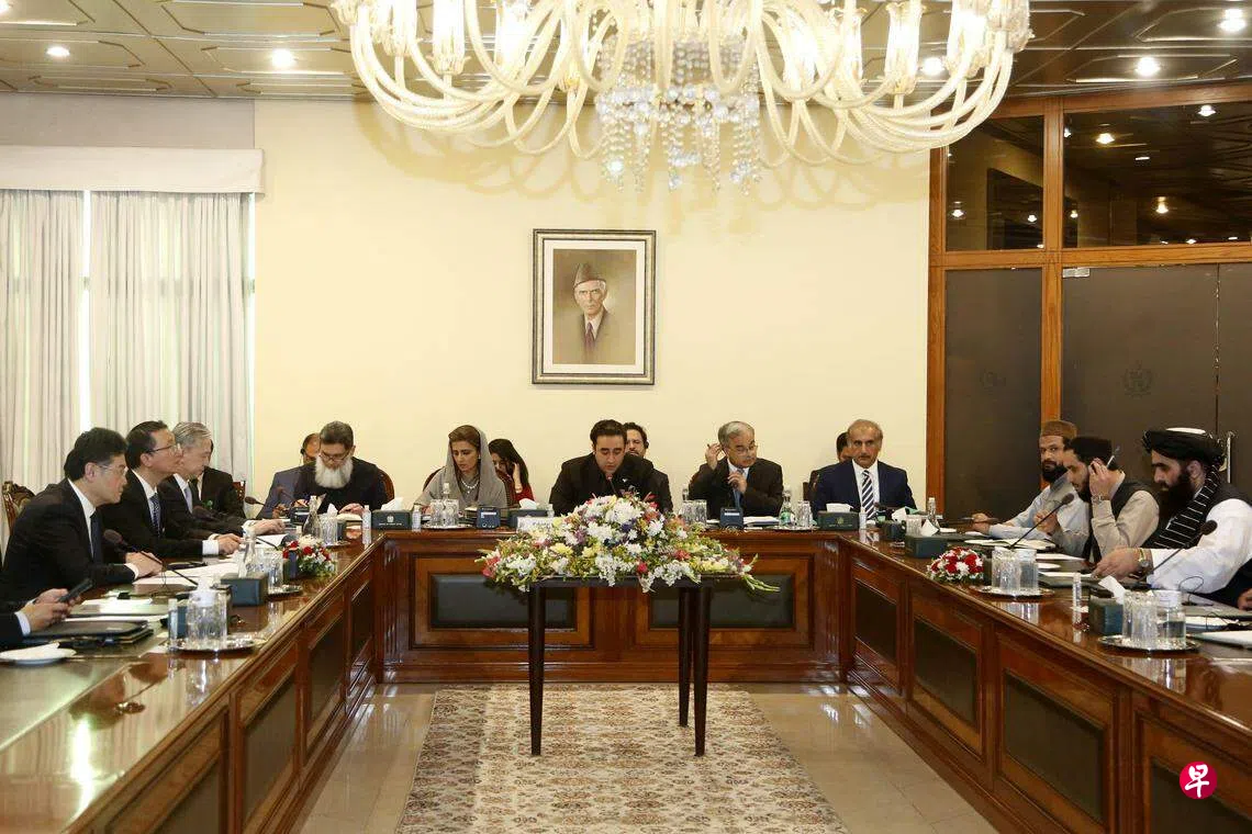 综合中国外交部网站消息与新华社报道,中国国务委员兼外交部长秦刚星期六(5月6日)在巴基斯坦伊斯兰堡出席第五次中阿巴三方外长对话。会议由巴基斯坦外长比拉瓦尔主持,阿富汗临时政府代理外长穆塔基出席。