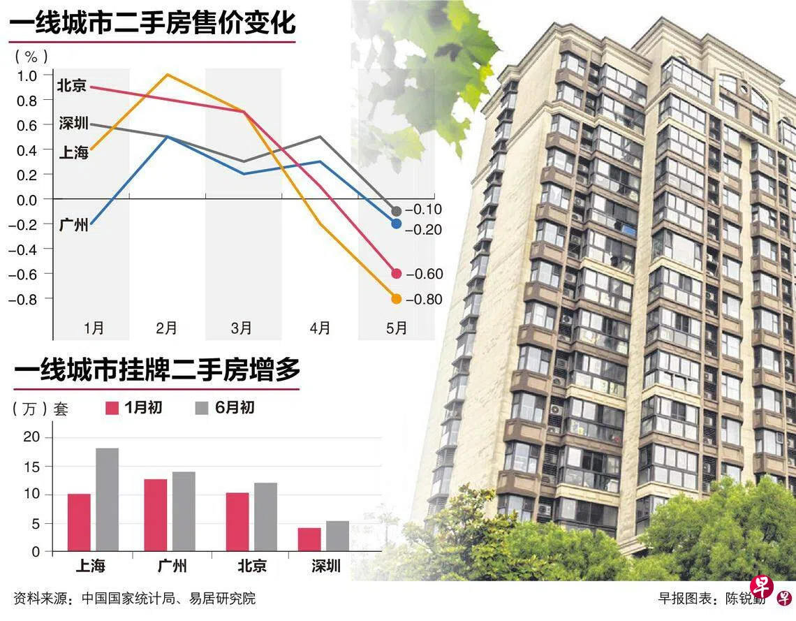 除了上海,北京、广州和深圳的二手房价格也在5月全面下跌。与此同时,挂牌出售的二手房源持续增加。在房价最坚挺的一线城市,素来不愁卖的二手房罕见地转向买方市场,显示对整体经济的悲观预期正对楼市造成深层冲击,令大批房主不惜降价也要脱售。