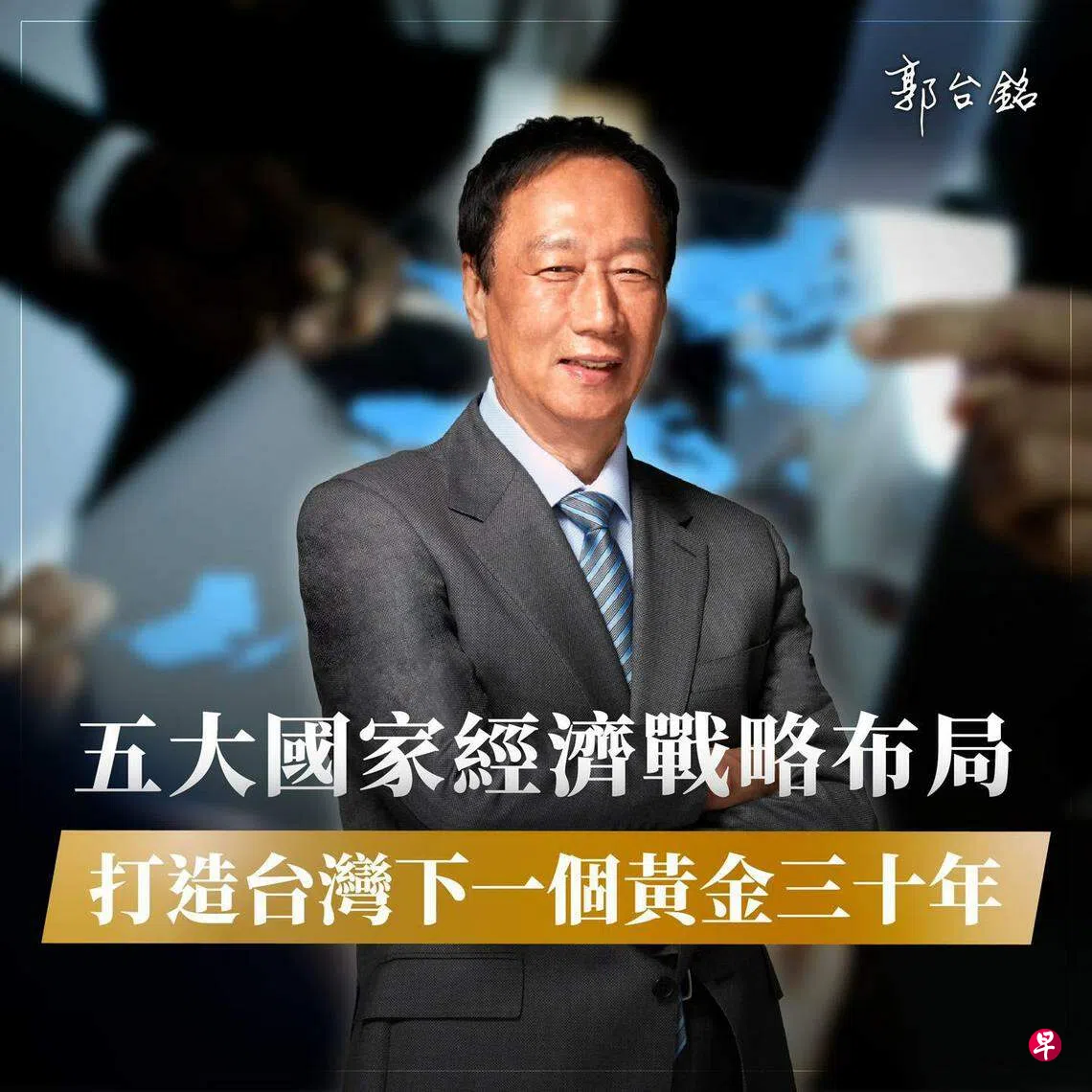 鸿海集团创办人郭台铭参选台湾总统大选的企图日渐明朗,在寄生国民党、并购民众党遇阻后,他被指酝酿在7月23日国民党全台党代表大会(全代会)后宣布独立参选,9月发动百万人联署支持提名。