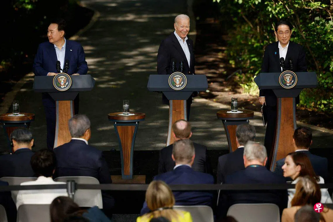 美国总统拜登、日本首相岸田文雄和韩国总统尹锡悦上星期五(8月18日)在美国戴维营举行峰会,对俄乌战争、台海与南中国海,以及朝鲜核武威胁等课题提出关切,并在联合声明中强烈谴责中国在南中国海的“危险和侵略行为”,进一步加大对中国施压。