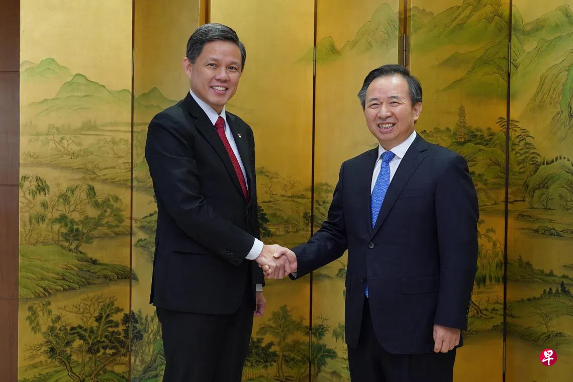 这是陈振声和李干杰首次会面。李干杰是在去年10月中共二十大后成为政治局委员,并在今年4月出任中组部部长;他今年5月也与访华的我国副总理兼财政部长黄循财举行了会谈。