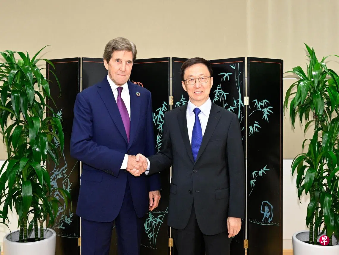 克里今年7月访华时,也在北京和韩正会面。根据美国国务院发布的文告,克里和韩正在纽约会面时讨论了双边和多边致力应对气候危机的高度重要性,包括推动年底的第28届联合国气候变化大会(COP28)取得成功。