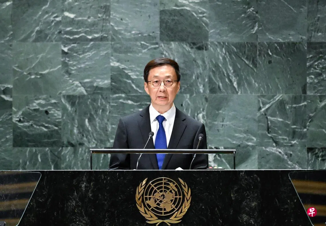 (纽约综合讯)中国国家副主席韩正在联合国大会上致辞时重申,台湾是中国不可分割的一部分,不要低估中国人民捍卫国家主权和领土完整的决心、意志和能力。