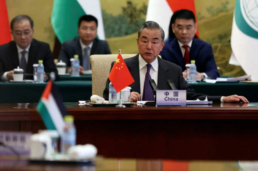 中共政治局委员、中国外长王毅与阿拉伯和伊斯兰国家外长联合代表团就以哈冲突问题举行会谈时,呼吁以色列停止对加沙民众的集体惩罚;沙特外长费萨尔敦促国际社会,就“制止以色列侵略者持续侵犯国际法和国际人道主义”采取行动,不能无动于衷。