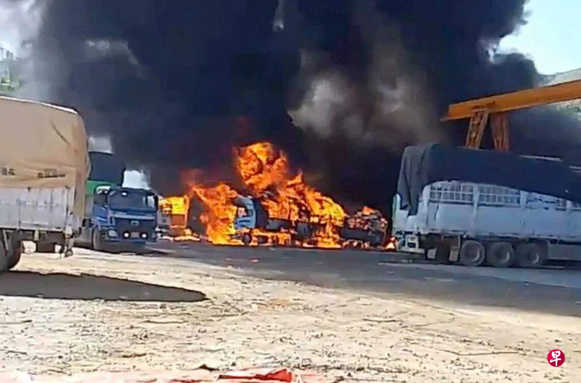 此前,一支从中国进入缅甸的货车车队星期五(11月24日)在缅北掸邦西北部木姐镇(Muse)遇袭,百多辆货车被烧毁。本周较早前,缅北城镇老街遭火箭炮袭击,导致至少10人死亡。军政府和民地武在两次袭击后均否认是他们所为。