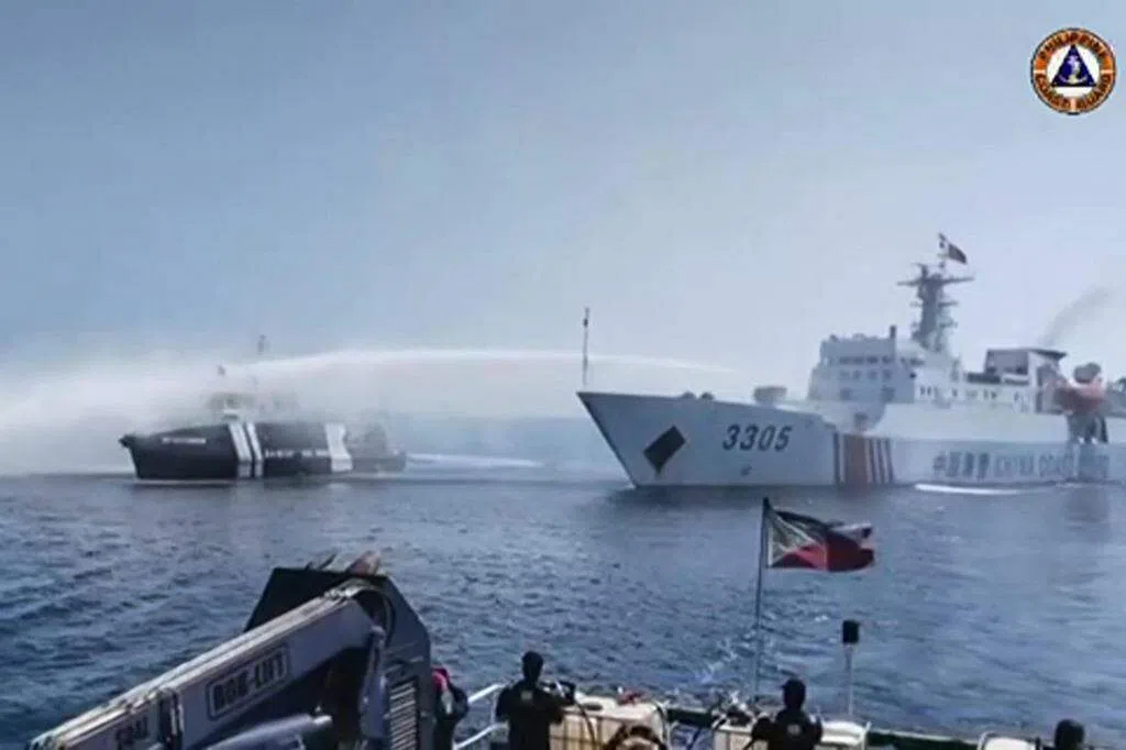 菲律宾海岸警卫队发言人塔瑞拉(Jay Tarriela)在社交平台X上贴出声明,指中国海警船冲撞菲国民用补给船,并对补给船和菲国海岸警卫队船只发射高压水炮,导致其中一艘补给船的发动机“严重损坏”,海岸警卫队船只桅杆受损。