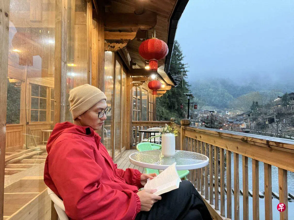 他在宁德市屏南县熙岭乡墘头村一处背靠葱郁山林、面向潺潺溪流的二层阁楼里,以月租1000元(人民币,下同,约186新元)租下一套100平方米的房子,开了一家名为“明心书屋”的书吧。