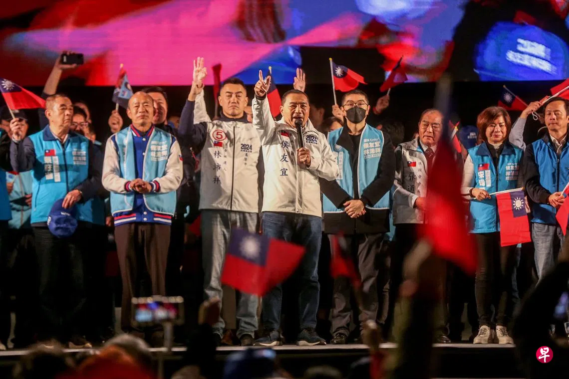 侯友宜、赵少康星期五(1月5日)晚上到民进党总统候选人赖清德的大本营台南造势,多名国民党重量级人物,包括党主席朱立伦、前总统马英九、不分区立委提名人韩国瑜等到场。