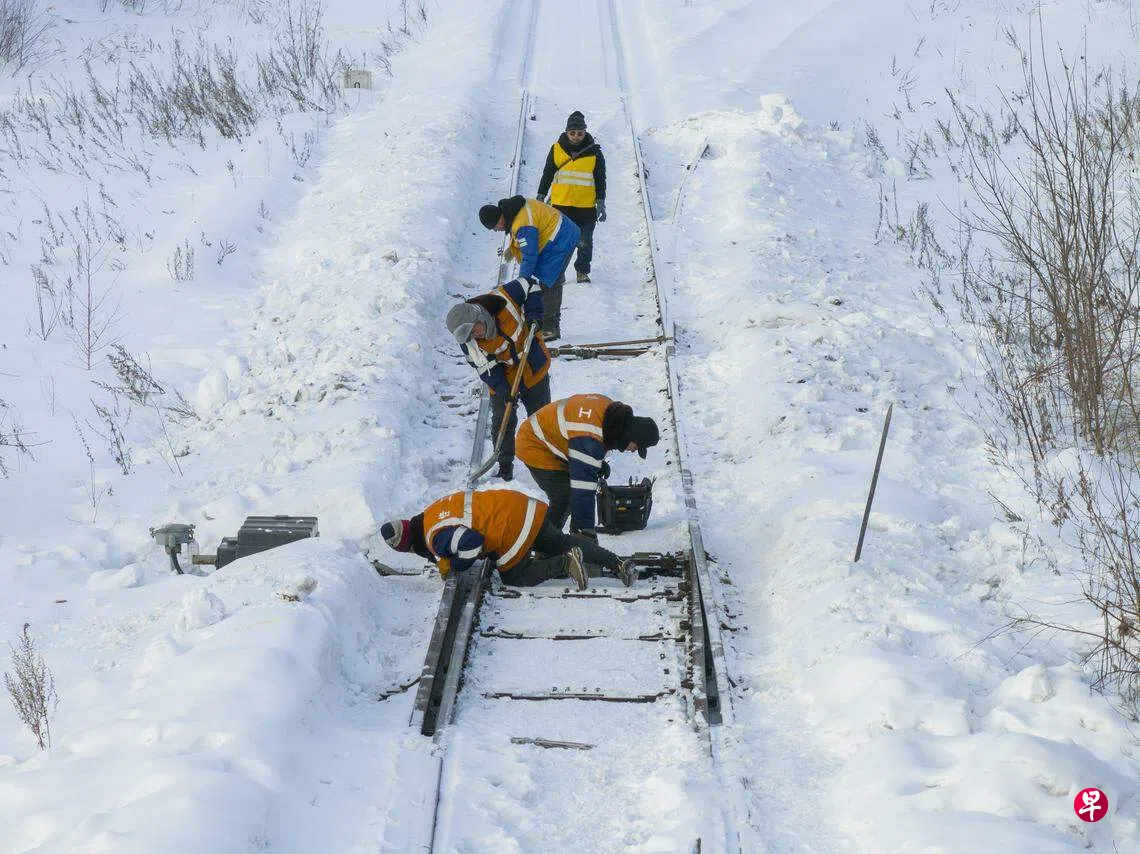 报道称,铁路运输方面需防范电网结冰对火车运行造成的影响。