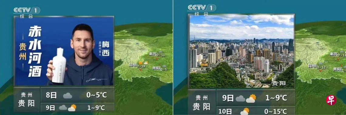 报道也提到,央视一台在2月7日的天气预报中,还出现梅西代言的酒水广告,但从8日开始也消失无踪,原画面位置被贵州贵阳的鸟瞰图取代。