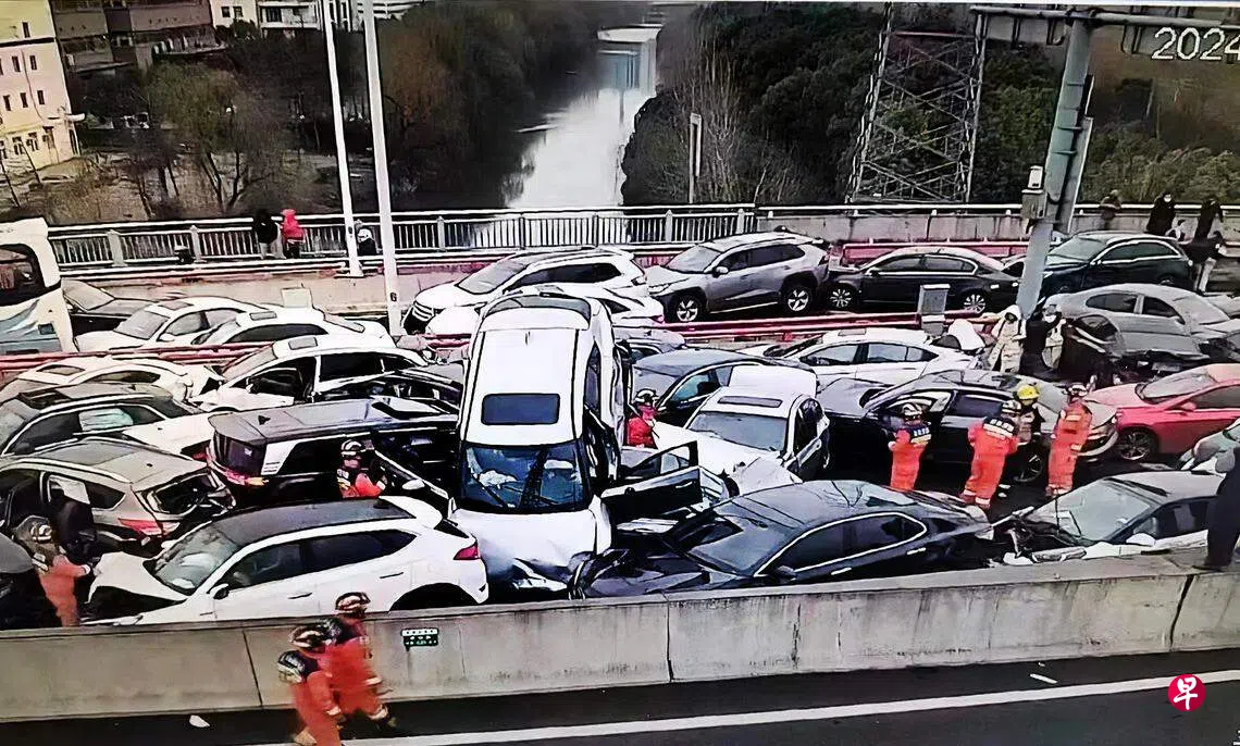 (苏州综合讯)中国江苏苏州工业园区一高架路段,星期五(2月23日)早上因路面结冰,导致百多辆汽车相撞,造成九人受伤。