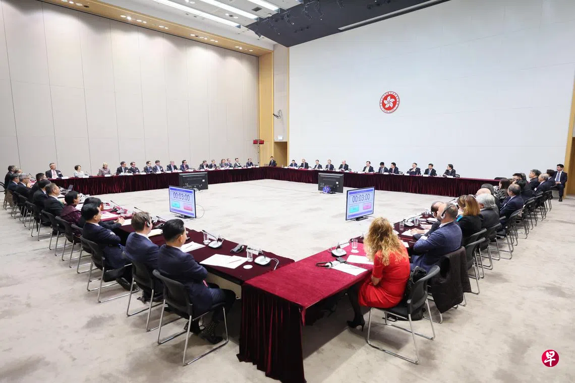 香港特区政府新闻公报说,香港特首李家超、财政司司长陈茂波等人,当天也陪同夏宝龙出席座谈会。